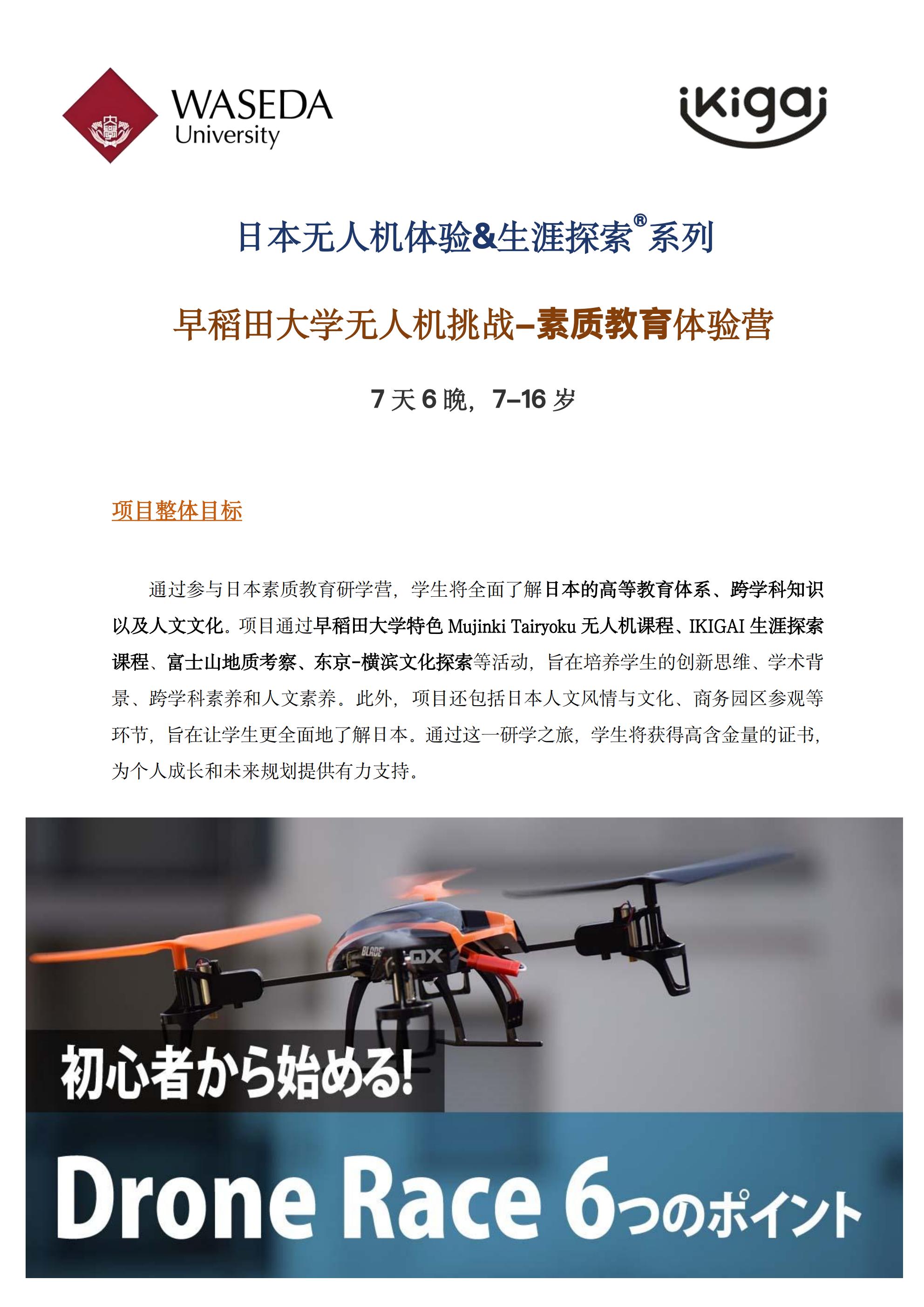 日本无人机体验&生涯探索系列早稻田大学无人机挑战素质教育体验营