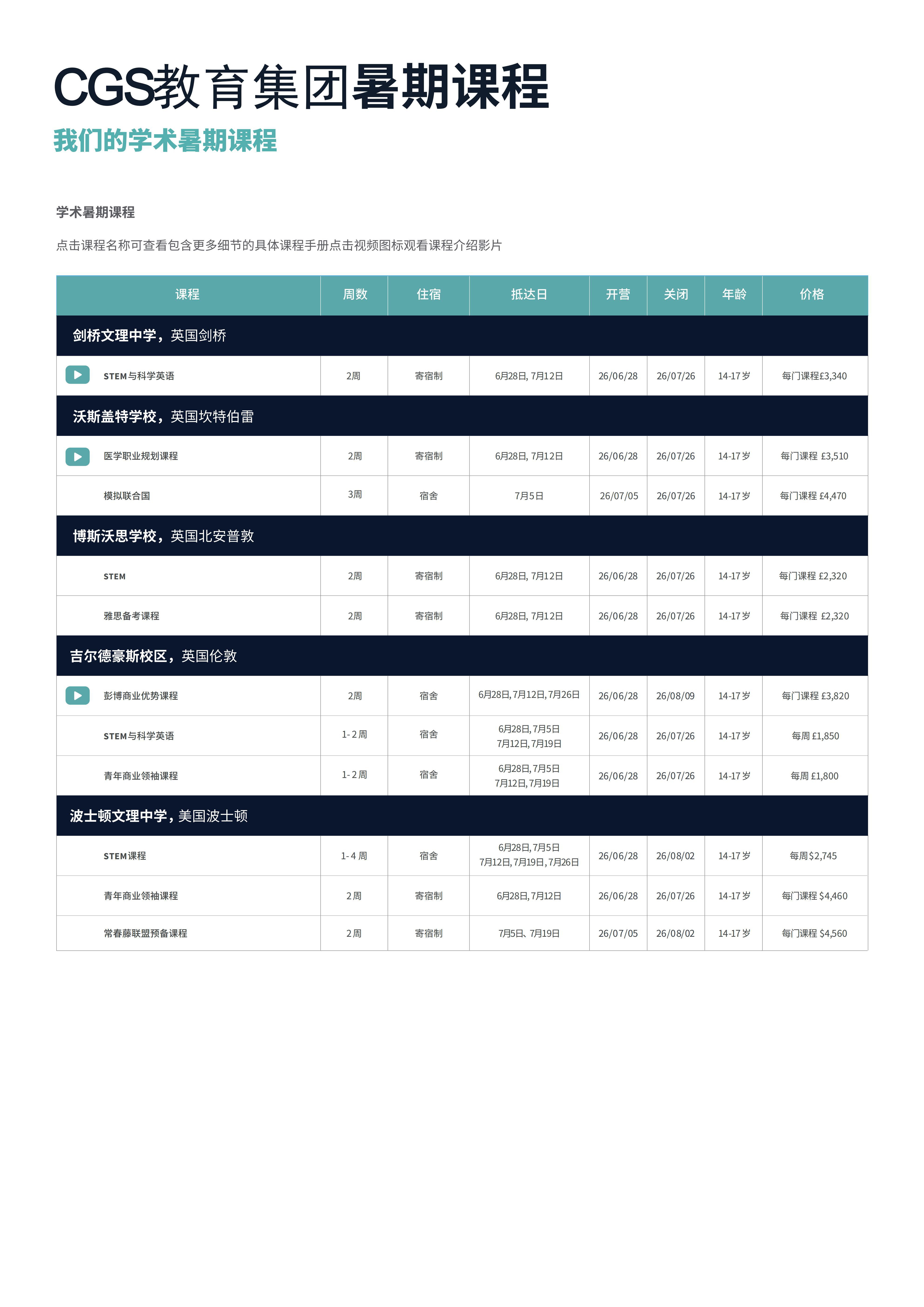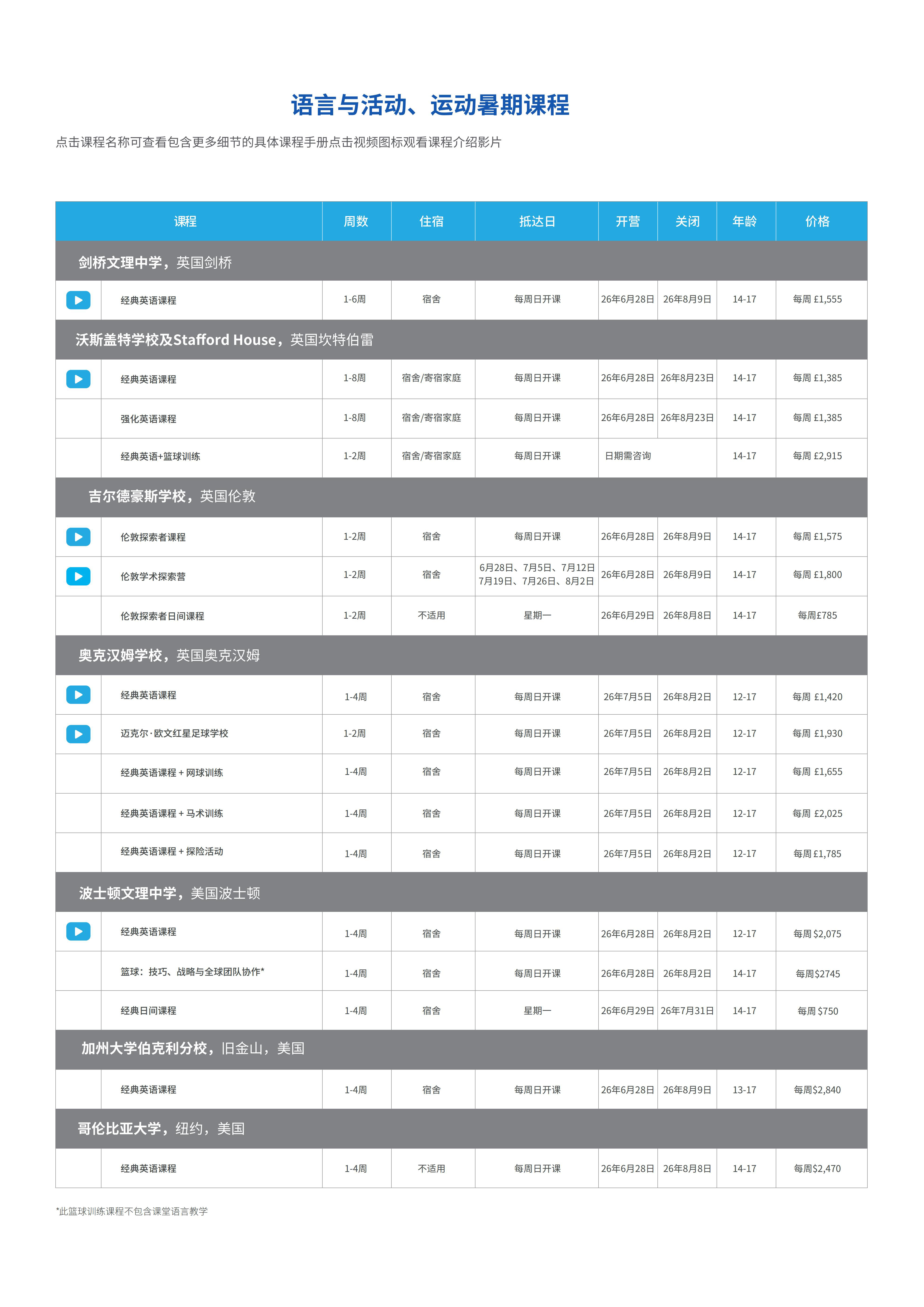 2026英国夏校